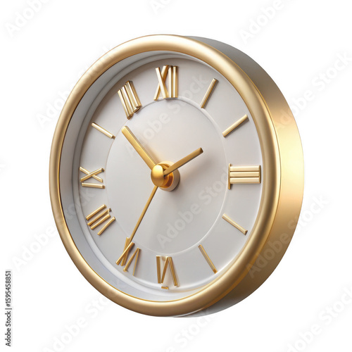 Classic Roman Wall Clock with Gold Accents isolated on transparent background Remove png