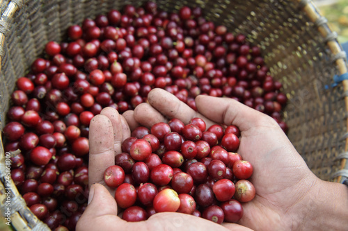 agriculture, arabica, bean, berry, beverage, tree branch, caffeine, cherry, hot drink, cultivate, drink, farming, food, fresh, freshness, fruit, grow, growing, growth, hand, harvest, industry, nature, organic, outdoors, raw, red, ripe, roast, siam