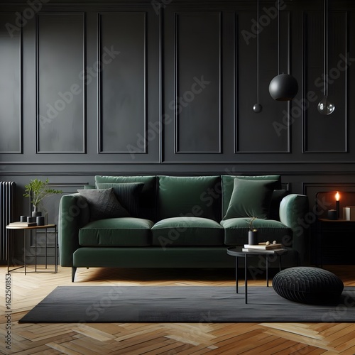 modern, dark, green, sofa, black, wall, living, room, trend, architecture, interior, design, amazing, unique, wallpaper, background, theme, top, best, simple, rated, furniture, chair, home, couch, armchair, leather, comfortable, luxury, three-dimensional, seat, contemporary, apartment, floor, lamp, house, decor, lounge, style, vintage