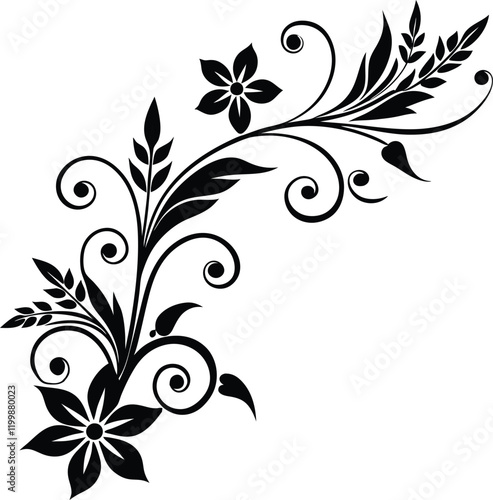 Floral corner ornament with leaves and abstract illustration
