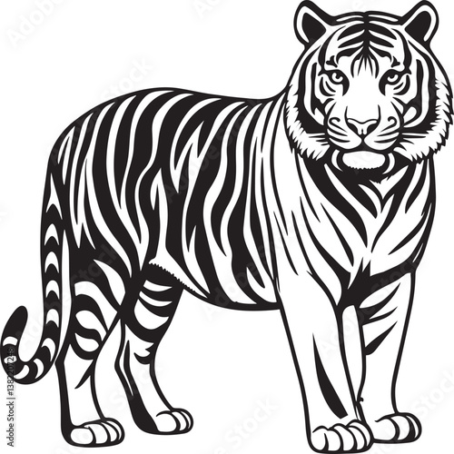 modern vector style illustration of a standing tiger with a sleek