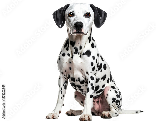 Realistic Dalmatian Dog Sitting with Spotted Coat Front View isolated on transparent background PNG