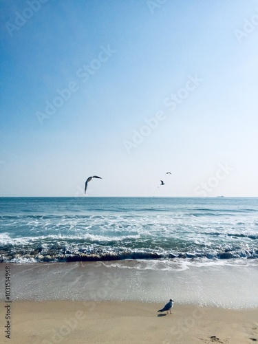 sea, gull, wave, cloud, summer, sun, blue, horizon, sand, ocean, travel, landscape, water, beach, sky, sunset, boat, bird, coast, surf, nature, fishing