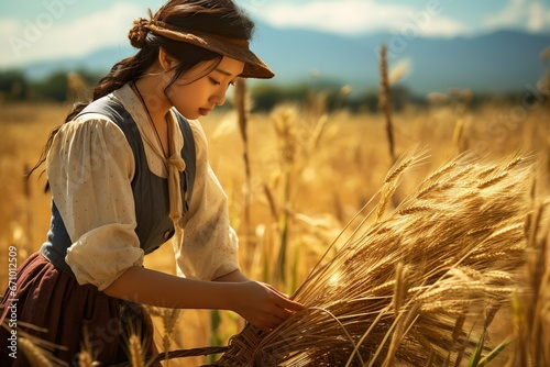 wheat, crop, woman, wheatfield, background, material, healing, ales, vegetable, grain, landscape, idyl, crop, field, view, plant, foodstuff, ear, food, importation, export, trade, flour, cultivation, farming, crop, producer, may, farmhouse, farm, june, july, season, copy space, background, asian, people