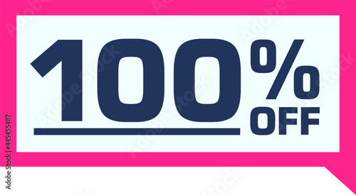100% off. discount on red sale tag, gift card in comic balloon format. percent discount number on badge. Flat offer stamp. for use in online stores, flyers and digital marketing