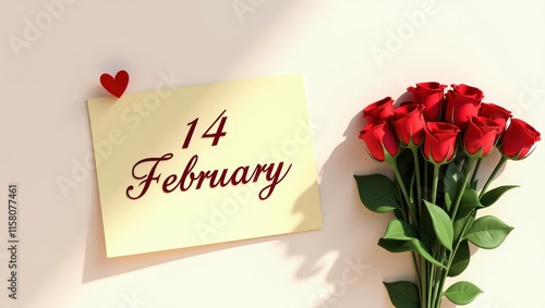 14 February written on a receipt with bouquet on side