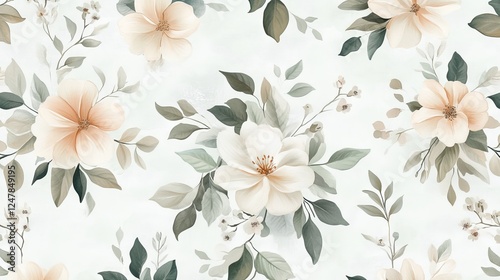 beautiful, intricate, seamless, floral, pattern, delicate, bloom, lush, leaf, elegantly, arranged, soft, pastel, tone, creating, harmonious, feminine, design, fabric