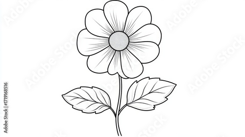 charming, vector, illustration, flower, tracing, colouring, activity, has, large, symmetric, design, round, flower petals, central, bloom, stem, leaf, are, easy, trace, bold, outline, constructed, information technology, honed, young, children, colours, simple, engaging, ideal, improving, motor, skill, coordination