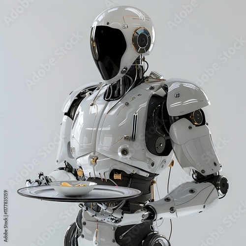 robot, waiter, futuristic, service, intelligence, android, mechanical, technology, industrial, automation, cyborg, metallic, modern, machinery, advanced, mechanized, science fiction, high technology, white, matte, server, employee, staff
