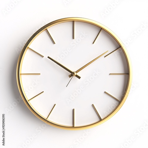 wall, clock, metallic, gold, hue, white, background, rendering, isometric, slim, profile, backlit, face, silent, sweep, second, hand