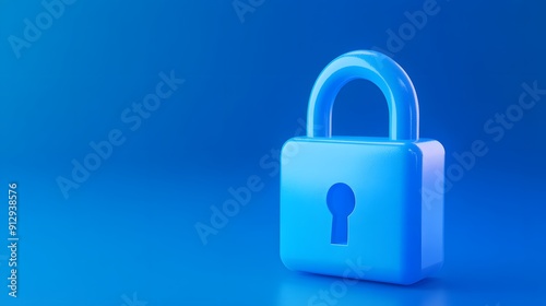 3D blue lock on a gradient blue background, symbolizing security, safety, and protection in a digital or physical sense.