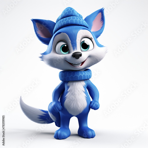 3D cartoon character of a blue fox Christmas mood сreated with Generative Ai