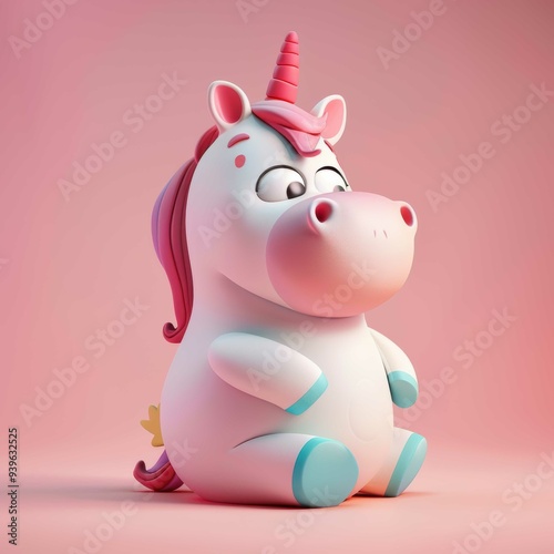 3d cute cartoon character unicorn, with vibrant colors, solid light pink background