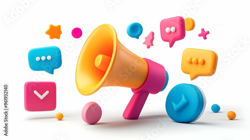 floating, megaphone, speech bubble, isolated, white background, vector, business, digital, communication, messaging, strategy, branding, creativity, innovation, abstract, sleek, modern, clean, professional, corporate, minimalistic, digital artwork, workspace, clarity, work, organised, preparation, creative, sharpened, leadership, briefcase, light bulb, planning, chart