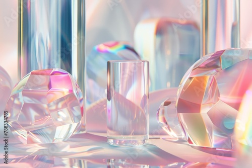 3d holographic objects in pastel colors