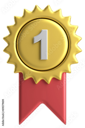 3D medal. Number one. 3D illustration.