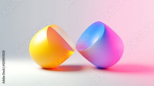 3D of colorful geometric shapes on a white background