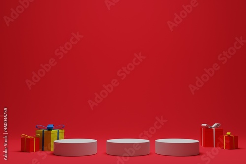 christmas, new year, dais, background, platform, stage, three-dimensional, box, product, celebration, holiday, gift, winter, pedestal, render, illustration, festive, ribbon, abstract, luxury, racked, banner, minimal, scene, cylinder, merry, christmas, design, sale, display, studio, white, cosmetic, new year, light, package, object, red, presentation, tree, surprise, greeting, geometric, gold, space, decoration, new, empty, happy