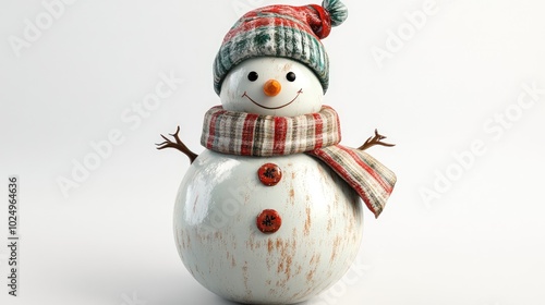 3D Render of a Snowman Sculpture on White Background. AI generated illustration.