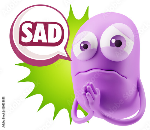 3d Rendering Sad Character Emoticon Expression saying Sad with C