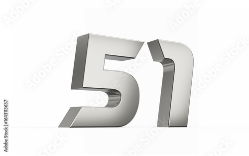 3d Silver number 51 Fifty one sleek metallic look isolated on white background, 3d illustration