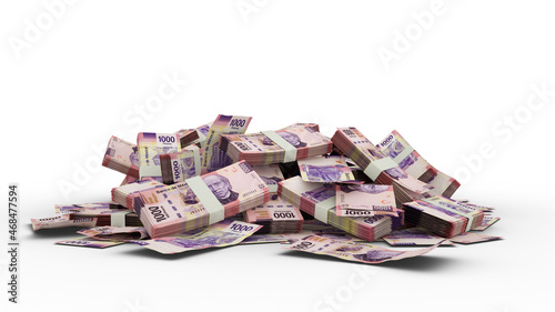 3D Stack of 1000 Mexican Peso notes isolated on white background