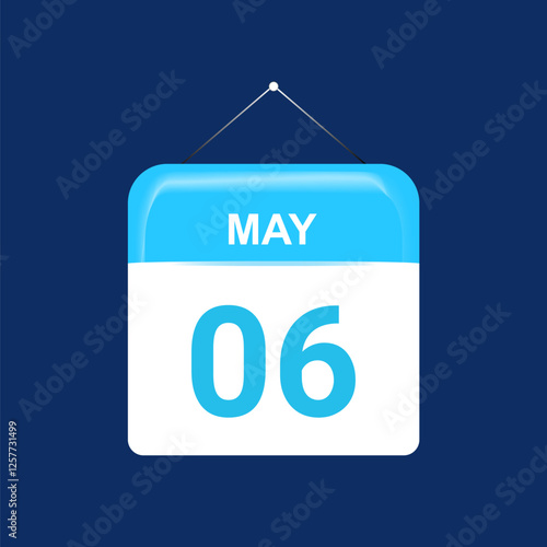 6th May daily calendar icon template. May 6 day calendar design. Single day calendar in vector illustration flat style.