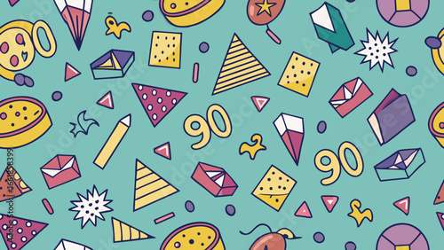 90s style seamless pattern with geometric shapes and retro objects 1990s vintage