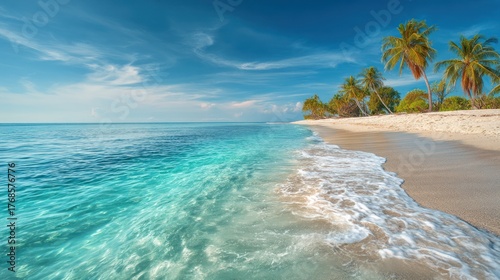 beach, scene, soft, sand, turquoise, water, palm, tree, swaying, summer, water, nature, seascape, sun, relax, blue, paradise, vacation, landscape, sea, sky, tropical, travel, cloud, cloud, beauty, wave, wave, horizon, island, coast, ocean
