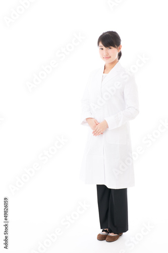 a beautiful asian doctor on white background