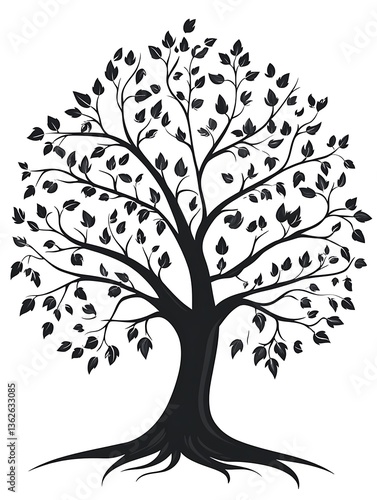 A beautiful illustration of a large black tree with many leaves