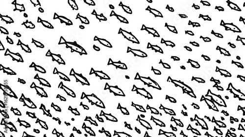 fish, pattern, black, white, graphic, design, simple, shape, drawing, illustration, many, school, group, ocean, water, underwater, background, texture, doodle, repeat, abstract, art, minimal, line, ink, vector, seamless, digital, artwork, image, swimming, nature