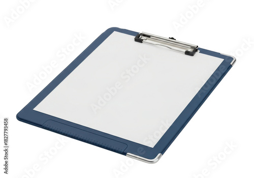 A blue clipboard with a blank white paper sheet isolated on transparent background