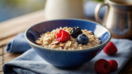 bowl, oatmeal, berry, blue, sunlit, morning, healthy, breakfast, almond, blueberry, raspberry, blackberry, nut, wooden, table, sunshine, fresh, organic, dairy, balanced, nourishment, milk, rustic, cosy, vitamin, snack, energy, tradition, wholesome, delicious, nutrient, fruit, receipe, kitchen, epicure, nourishing, comfort, no people