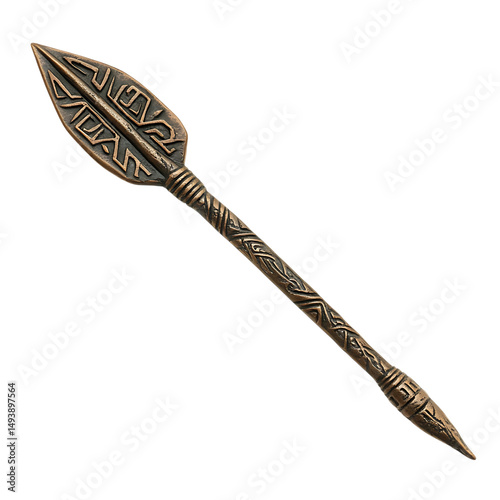 A Bronze Arrow with Celtic Ogham Script Druidic Tribal Design Isolated on Transparent Background