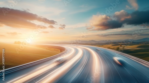 car, driving, long, curvy, road, sunset, sky, highway, cloud, sun, setting, peaceful, speed, distance, serene, travel, light, asphalt, transportation, landscape, traffic, motion, journey, line, nature, summer, way, horizon, view, sunlight, sunrise, blue, route, vehicle, background, blurred, dusk, fast, street, perspective, movement, yellow, empty, trip, green, sunny, night, country