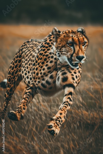 a cheetah running in the grass