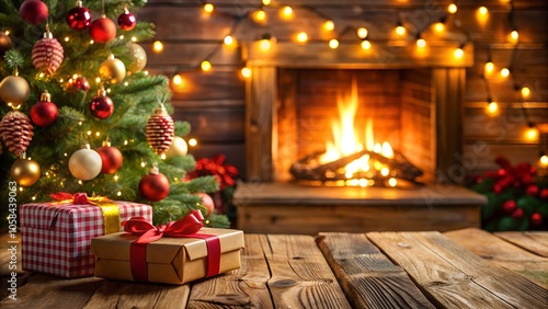 present, fireplace, sparkle, empty, defocused, christmas tree, magic, garland, new year, eve, decorative, decoration, december, green, fir, greeting, background, celebration, home, room, christmas, tree, festive, new, christmas, season, design, interior, merry, house, holiday, winter, year, gift, living, decor, beautiful, decorated, happy, evening, indoor, illuminated, light, warm, night, table