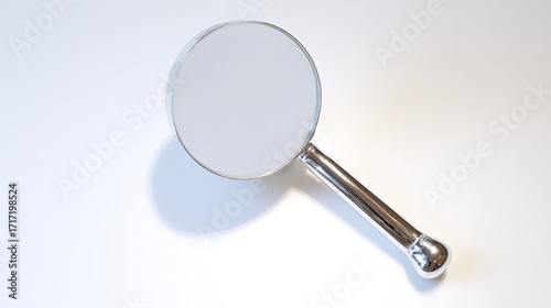 A chrome magnifying glass on white surface, symbolizing focus and precision in exploration