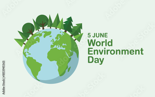 A clear graphic depicting planet Earth with diverse green trees highlighting the importance of World Environment Day