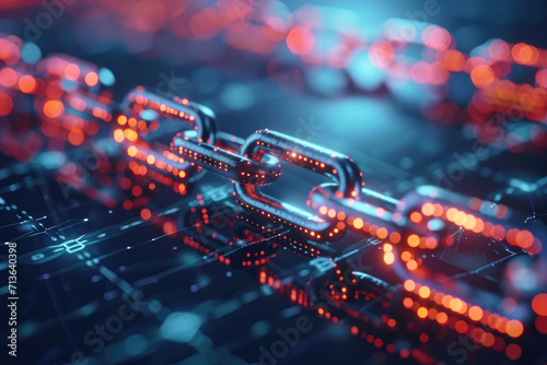 A close up of a chain with a blue background