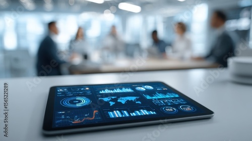 closeup, tablet, displaying, software, blurred, colleague, collaborating, background, integration, technology, teamwork, safeguarding, information, asset, collaboration, professional, datum, security, innovation, digital, computing, network, monitoring, performance, analysis, business, office, workplace, electronic, device, strategy, protection, risk, management, visual, dynamic, tech