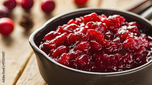 A close-up of delicious cranberry sauce in a bowl, perfect for festive meals and holiday celebrations with rich, vibrant color.