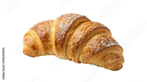 a close-up shot of a delicious croissant, showcasing its flaky layers and golden color. isolated, transparent background