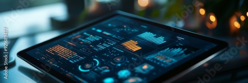 tablet, datum, chart, graph, business, intelligence, technology, progress, innovation, modern, digital, screen, display, dashboard, software, application, app, interface, design, futuristic, future, trend, analysis, research, report, strategy, growth, success, performance, productivity, efficiency, information, cognition, solution, problem solving, artificial intelligence