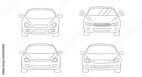 car, vector, automobile, vehicle, transport, sedan, coupe, front, view, outline, drawing, illustration, graphic, icon, symbol, set, collection, assortment, different, modern, contemporary, simple, minimalist, line, art, vignetting, doodle, black, white, isolated, background, design, element, template, concept, technology, transportation, auto, automotive, drive, road, journey, travel, clip, pictogram, blueprint, diagram