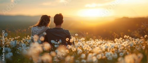 couple, to sit, field, flower, watch, sunset, create, romantic, serene, atmosphere, space, laugh, sweetheart, background, tranquil, smile, spring, romance, moment, leisure, nature, floral, mate, dawn, partner, 1, sundown, flora, sunlight, calm, peaceful, nurture, summer, beauty, puckered, light, landscape, connect, glow