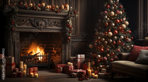 christmas, fireplace, tree, gift, decor, holiday, winter, cosy, warm, festive, home, room, interior, fire, candle, present, illumination, ornament, celebration, season, christmas, christmas, family, joy, comfort, happy, rustic, elegant, classic, vintage, traditional, romantic, magical, serene, peaceful, glowing, dark, wooden, luxury