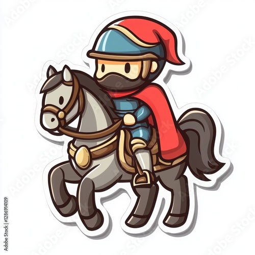 cartoon, knight, horse, illustration, mediaeval, fantasy, character, riding, helmet, children, whimsical, playful, cute, clip art, sticker, design element, artwork, digital illustration