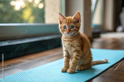 cat, kitten, orange, pet, domestic, animal, small, adorable, fluffy, tabby, young, felino, mammal, furry, whisker, curious, friendly, eye, sitting, indoor, home, relaxed, peaceful, serene, happy, wellness, exercise, fitness, yoga, mat, leisure, lifestyle, practice, mindfulness, balance, flexibility, health, well-being, training, pose, posture, relaxation, zen, studio, light